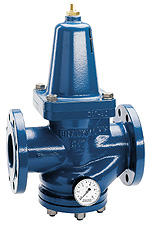 Mit Federhaube aus Grauguss, Sitz und Kolbenführungsbuchse aus Rotguss, mit entlastetem Einsitzventil und Hinterdruckmanometer, Gehäuse aus Sphäroguss innen und aussen pulverbeschichtet