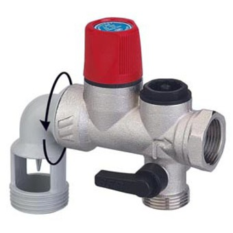 Sicherheitsgruppe für Elektroboiler mit max. 10kW, mit Edelstahlsitz, bestehend aus Sicherheitsventil 1/2" 7 Bar, Rückflussverhinderer und Absperrkugelhahn.